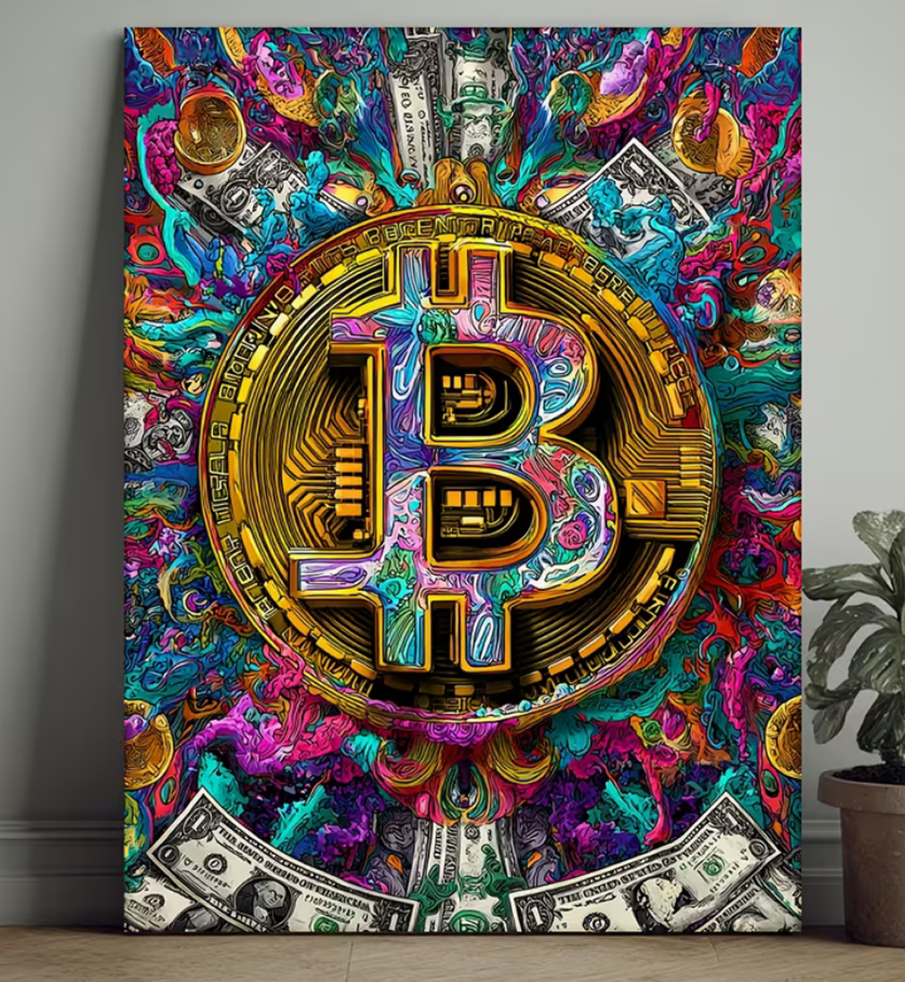 Ce tableau n’est pas qu’une simple représentation de la célèbre cryptomonnaie ; c’est une explosion d’énergie et de couleurs. Conçu pour capturer l’esprit d’innovation et la volatilité dynamique du marché, ce tableau utilise une palette vibrante pour donner vie au symbole emblématique du Bitcoin (₿).