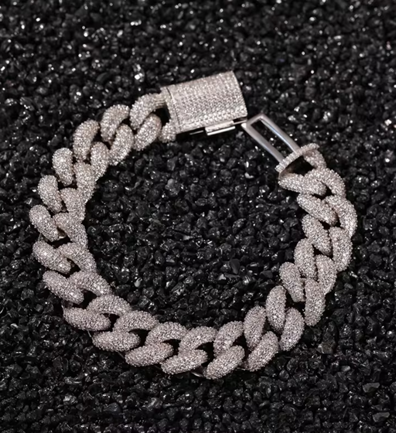 Description Passez au niveau supérieur avec le bracelet Cubain “Bubble”, la pièce ultime pour ceux qui veulent imposer leur style avec audace. Inspiré par les tendances les plus fortes de la scène Hip-Hop actuelle, ce bracelet revisite la maille cubaine classique en lui donnant un relief arrondi et bombé, créant un effet “bulle” unique. Entièrement serti de pierres scintillantes, il offre un volume tridimensionnel qui capte la lumière sous tous les angles. Ce n’est pas juste un bijou, c’est une déclaration de réussite et de charisme.