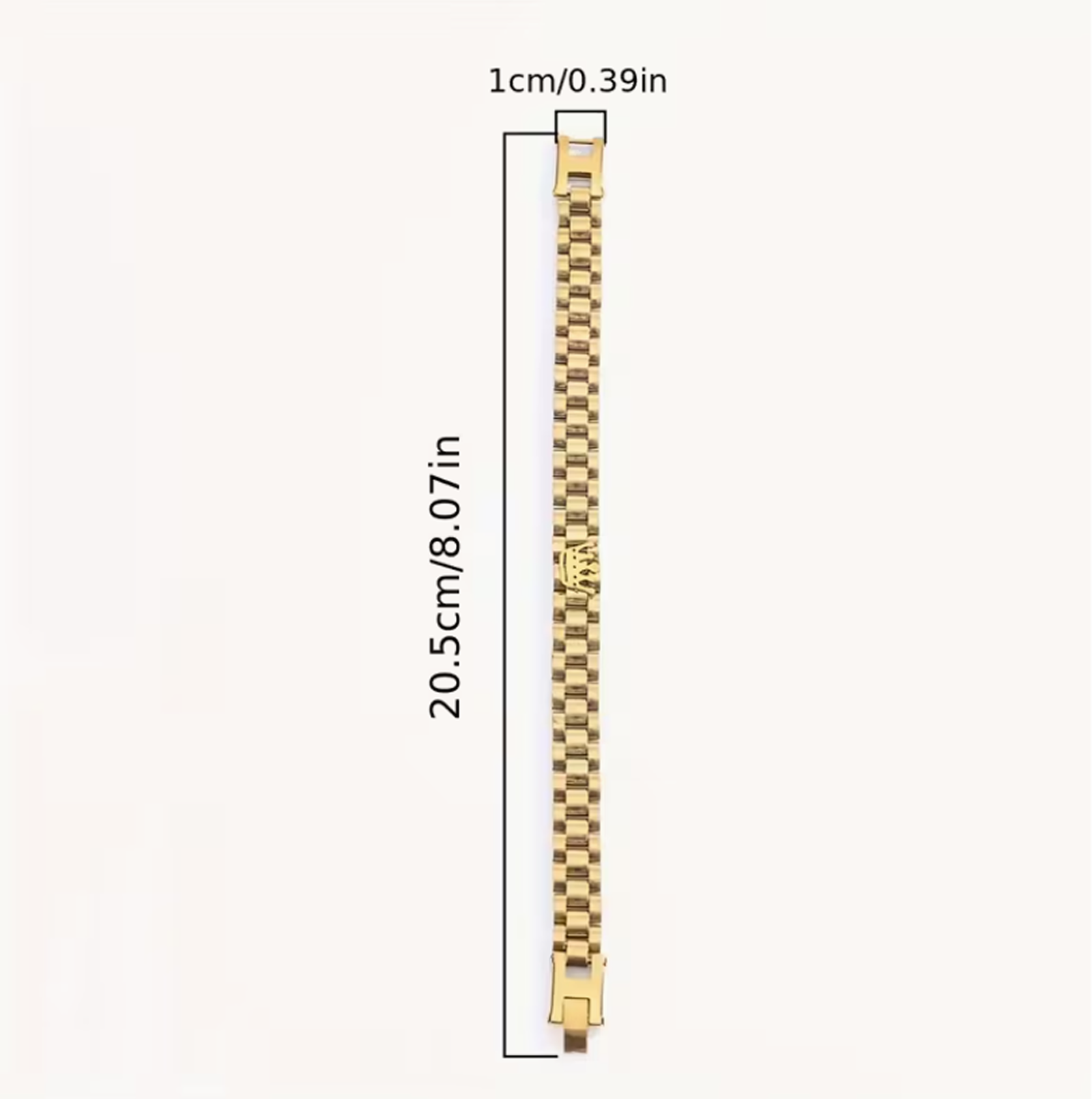 joutez une touche de prestige à votre style avec ce bracelet en acier inoxydable orné d’une couronne, symbole d’élégance et de confiance. Conçu pour durer, il résiste à l’usure quotidienne tout en conservant son éclat grâce à sa matière inoxydable de haute qualité.