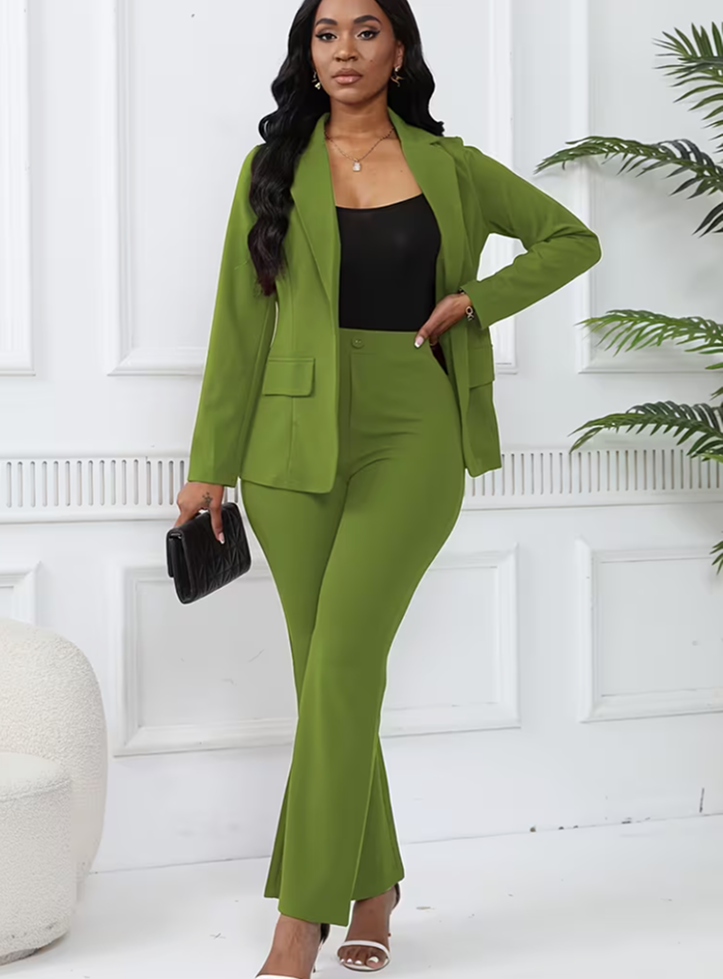 Cet ensemble deux pièces avec veste pour femme incarne l’élégance moderne et le confort. Composé d’une veste soigneusement coupée et d’une pièce assortie, il offre une silhouette harmonieuse et sophistiquée. Sa coupe structurée apporte une touche chic tout en restant agréable à porter, idéale pour un look soigné au quotidien ou lors d’occasions spéciales.