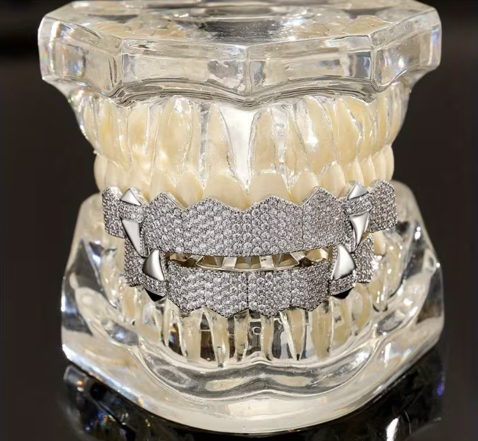 Inspiré par les tendances les plus audacieuses des scènes Hip-hop européennes et américaines, cet ensemble de dents de vampire ne fait pas dans la demi-mesure. Conçu pour ceux qui veulent un look exagéré et ultra-visible, cet appareil dentaire transforme radicalement votre expression pour un rendu à la fois sombre, luxueux et percutant.