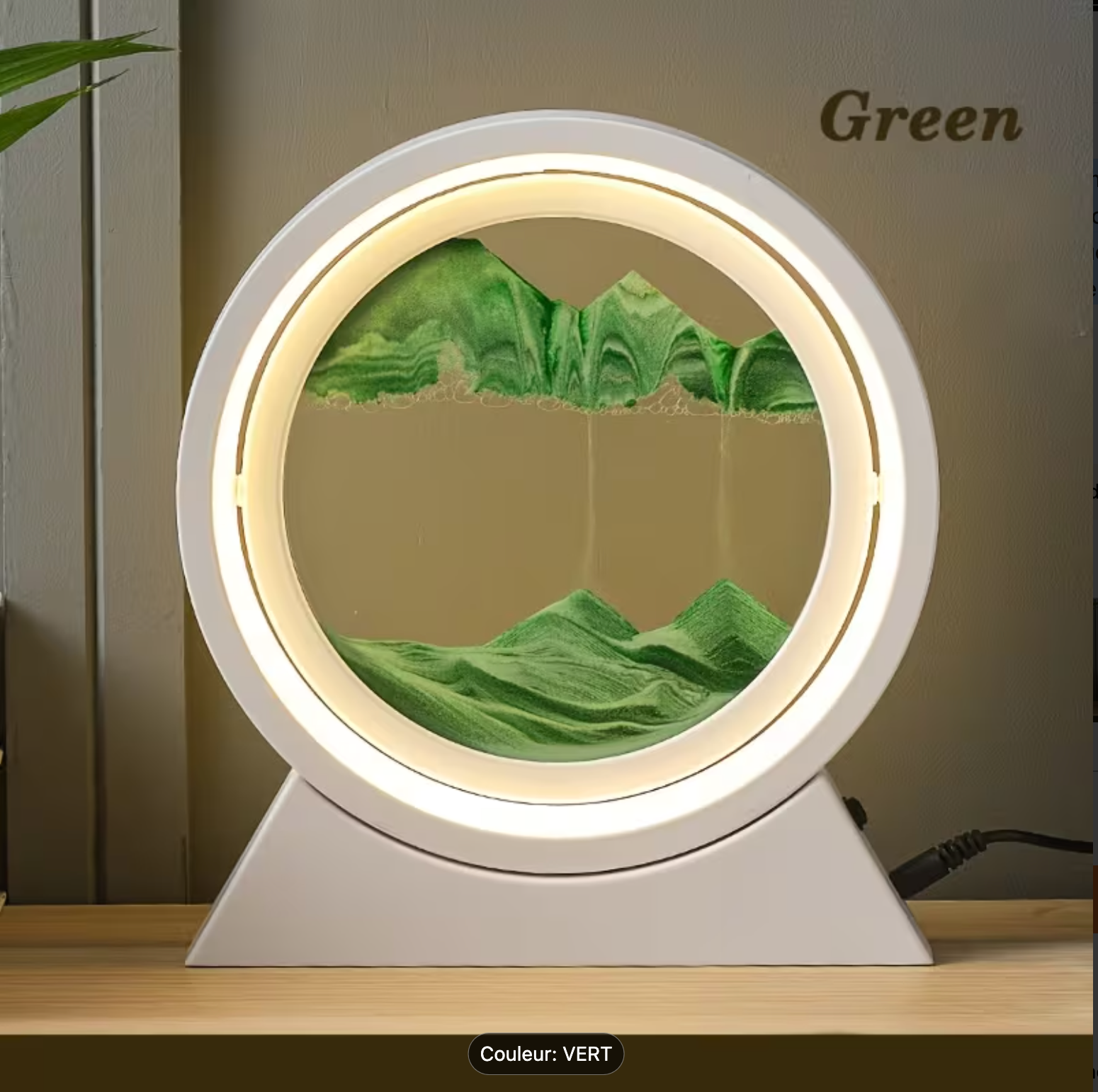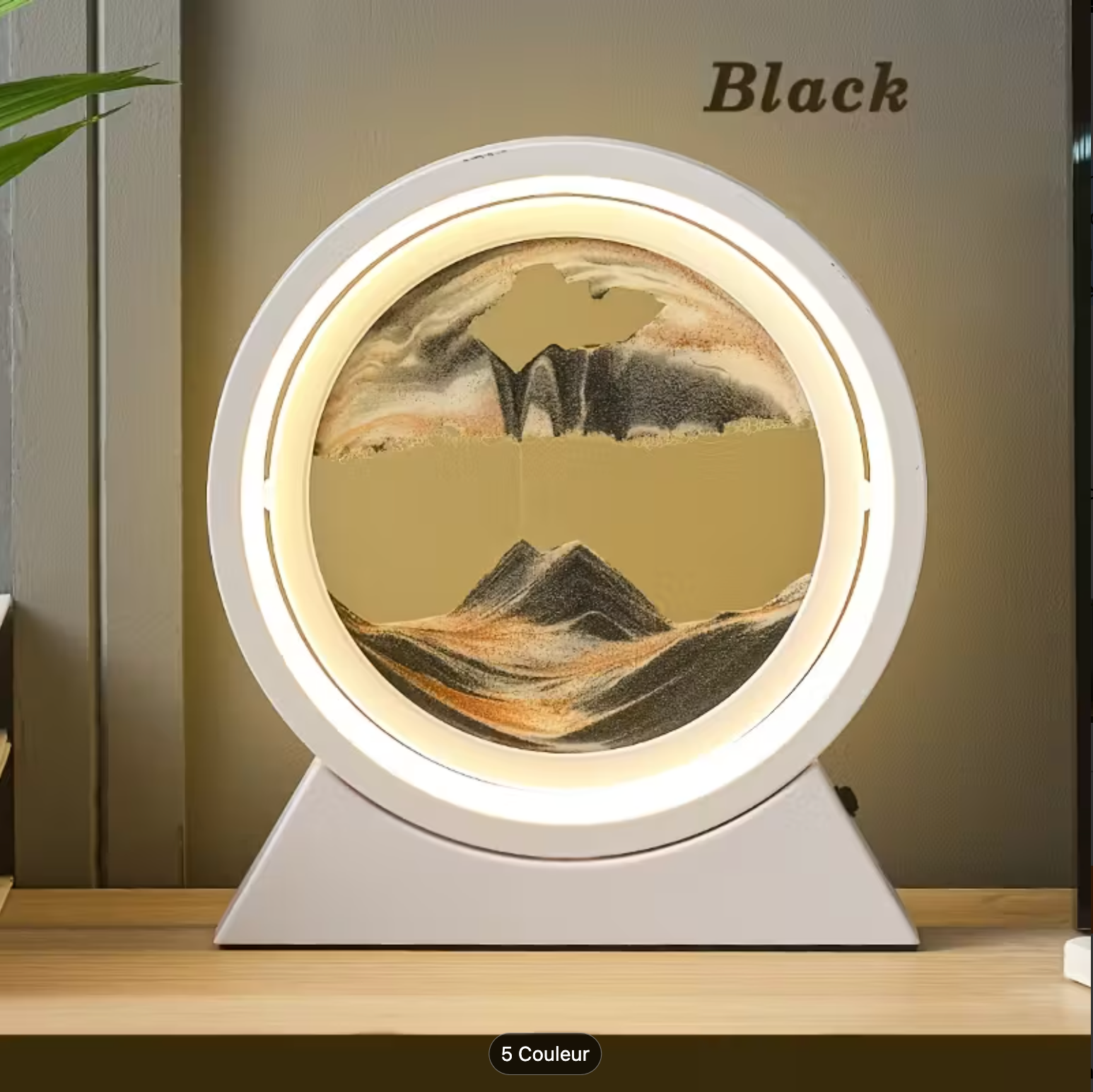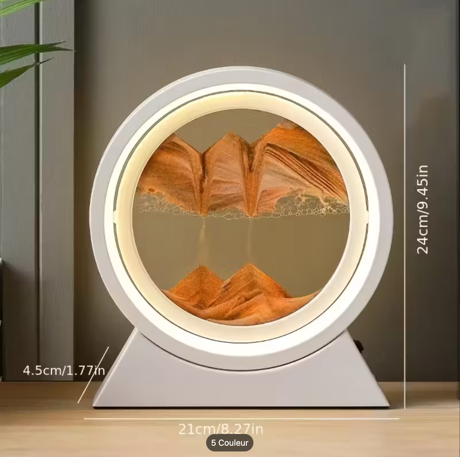 Évadez-vous sans quitter votre fauteuil avec cette lampe de table révolutionnaire. Mariant la technologie LED et la beauté naturelle du sable mouvant, cette pièce crée des paysages uniques et non répétitifs à chaque rotation. Observez les grains de sable tomber doucement pour former des montagnes, des dunes ou des fonds marins complexes. C’est une véritable méditation visuelle qui apaise l’esprit après une longue journée.