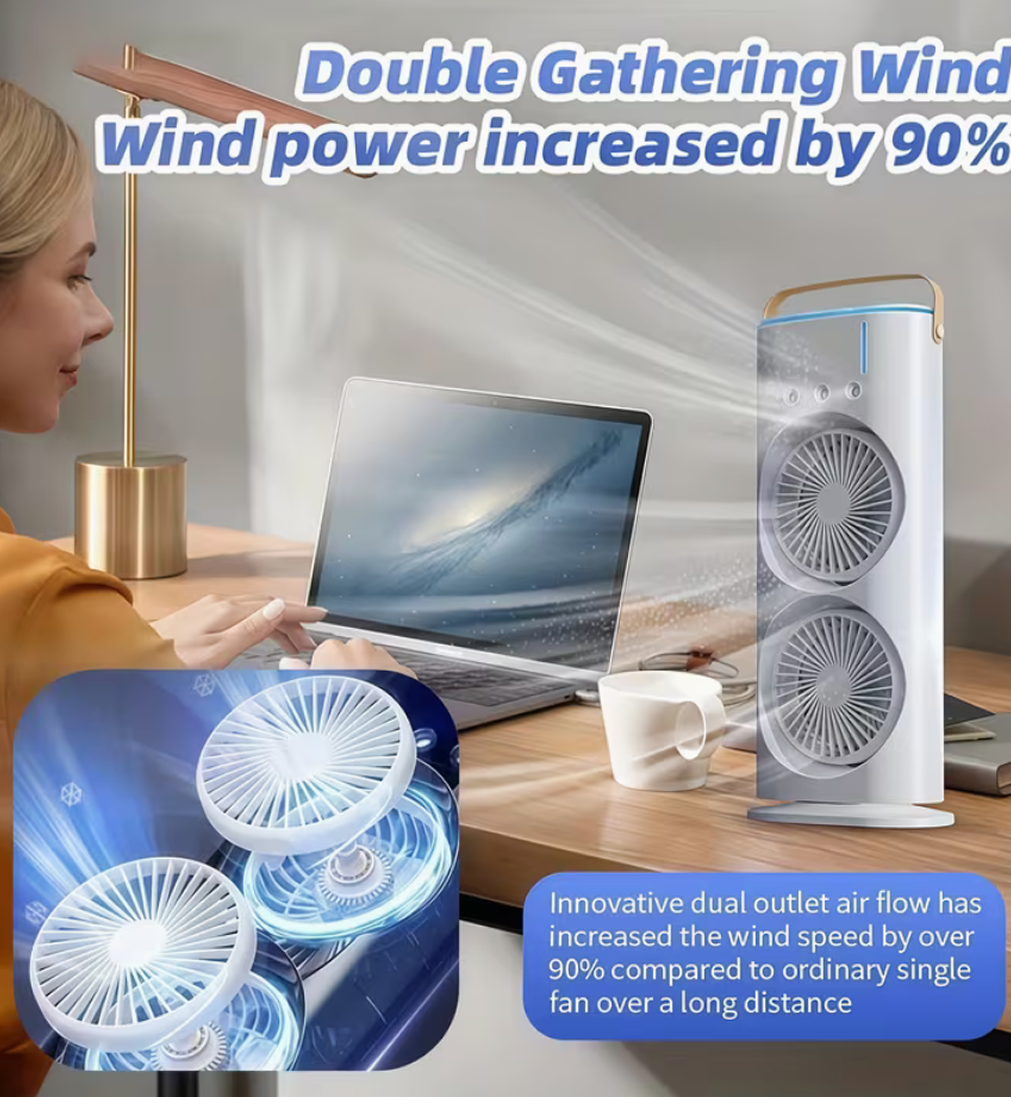 Effet Turbo-Glaçons : En ajoutant de l’eau glacée ou des accumulateurs de froid dans le réservoir, le jet d’humidification devient une véritable source de froid intense pour un soulagement immédiat lors des pics de chaleur.