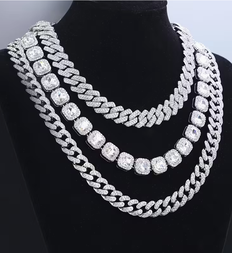 Description Adoptez le look ultime avec ce set exclusif de 3 chaînes cubaines. Conçu pour ceux qui ne veulent faire aucun compromis sur leur style, ce trio offre un jeu de superpositions (layering) parfait sans avoir à chercher l’accord idéal : nous l’avons créé pour vous. Du choker près du cou à la chaîne plus longue et imposante, ce set apporte une dimension de puissance et de luxe à votre silhouette. Portez-les ensemble pour un impact maximal “Iced Out” ou séparément pour une touche de sophistication urbaine plus sobre.